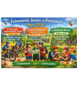 Le mois de mars 2026 s’annonce sportif et convivial au Poinçonnet ! Le club, avec le soutien de l’USVTT Poinçonnois et de la Fédération Française de cyclotourisme organise trois grands rendez-vous dédiés aux jeunes cyclotouristes, mêlant apprentissage, dépassement de soi… et surtout plaisir de rouler ensemble.