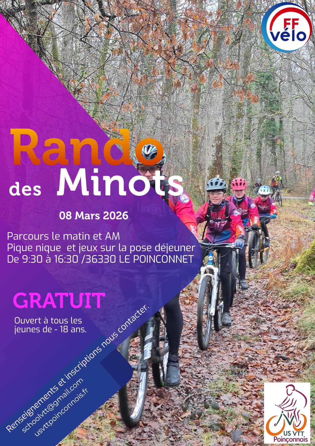 Place à la convivialité avec la Rando des Minots, organisée par l’USVTT Poinçonnois le dimanche 8 mars 2026, au départ du club du Poinçonnet.
